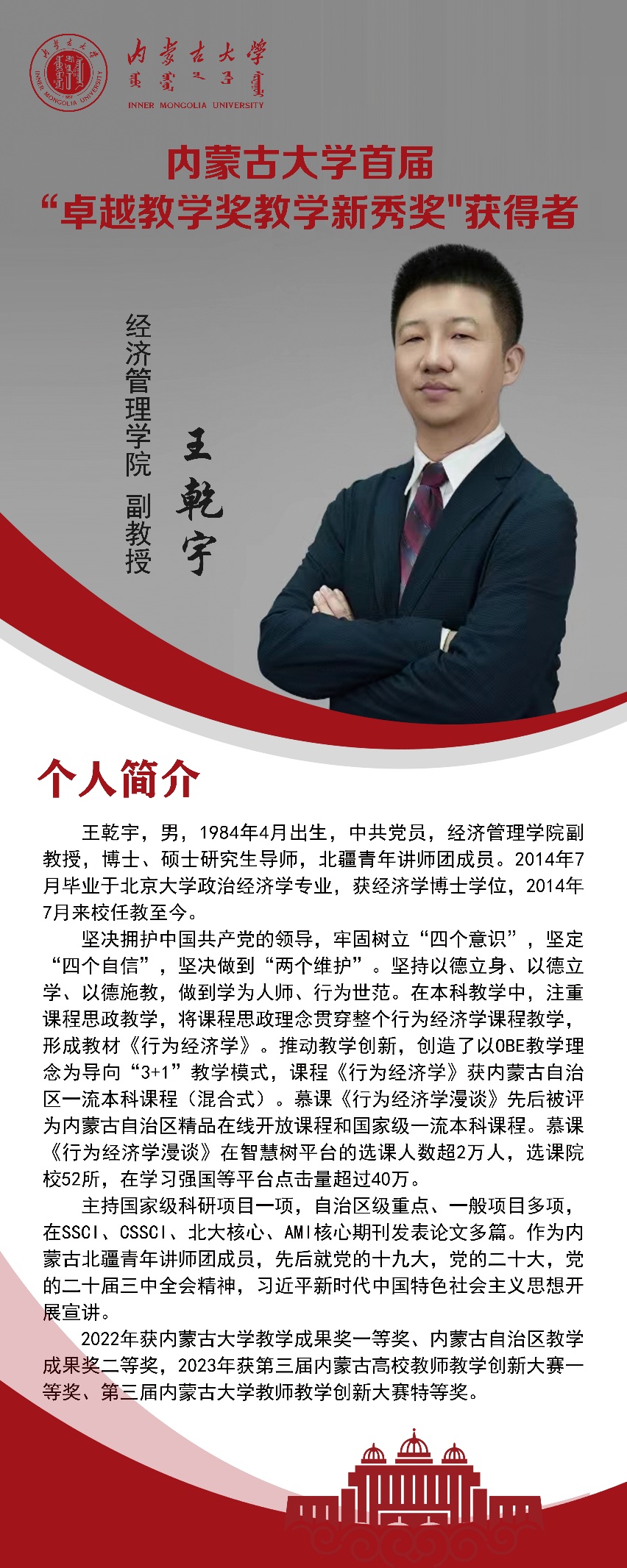 pa集团官网入口首届卓越教学新秀奖获得者——王乾宇副教授