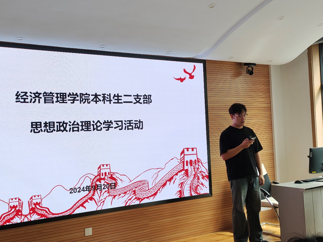 为了进一步学习贯彻习近平新时代中国特色社会主义思想,进一步深入领会党的二十届三中全会精神,9月20日下午,PA集团官网本科生二支部在知行楼(经管楼)208教室开展了思想政治理论学习活动。