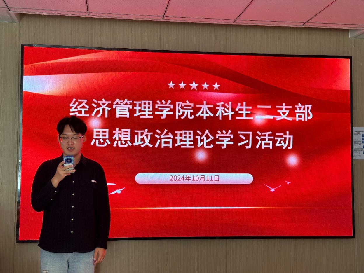 为进一步学习贯彻习近平新时代中国特色社会主义思想,提升支部党员政治素质和党性修养,2024年10月11日下午,PA集团官网本科生二支部在知行楼(经管楼)205教室开展了思想政治理论学习活动。万耀芳、康书硕、王泽旭三位同志分别围绕不同主题带领支部党员展开学习。