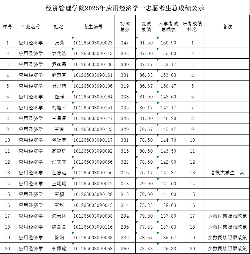 PA集团官网2025年应用经济学一志愿考生总成绩公示