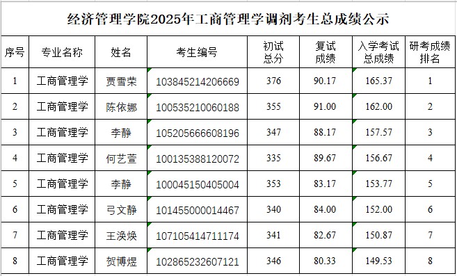 PA集团官网2025年工商管理学调剂考生总成绩公示(二)