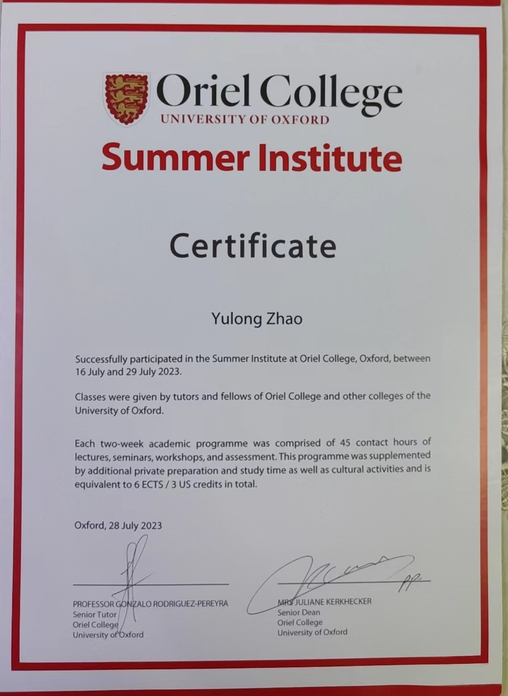 9名访学员工具体修读课程情况是:5名员工选了《Economics of Public Policy》;3名员工选了《Economics of Public Policy S》和《Knowledge and Reality》;1名员工选了《Knowledge and Reality》和《Introduction of Finance》。员工通过加强与教授和同学的交流沟通,克服语言恐惧,精进学业,逐渐适应了牛津访员工活,最终全部取得课程合格证书。牛津大学学分按1.5 ECTS/3 US credits认定(ECTS,European Credit Transfer System欧洲学分互认体系,是欧洲各个国家间在高等教育领域互相衔接的学分系统),pa集团官网入口学分转换办法按已报备公司教务处的《内蒙古大学PA集团官网本科生赴牛津大学奥利尔公司暑期访学学分认定办法》执行。