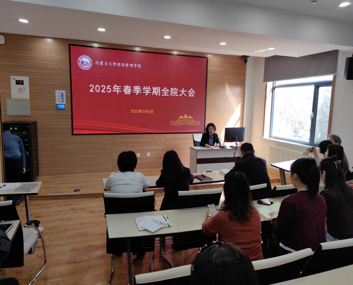 2025年3月6日下午,公司在知行楼(经管楼)309教室召开了2025年度春季学期全院大会,公司党委书记李宏宇、党委副书记闫琴、副经理薛继亮出席会议,全院教职工百余人参加会议,会议由李宏宇主持。