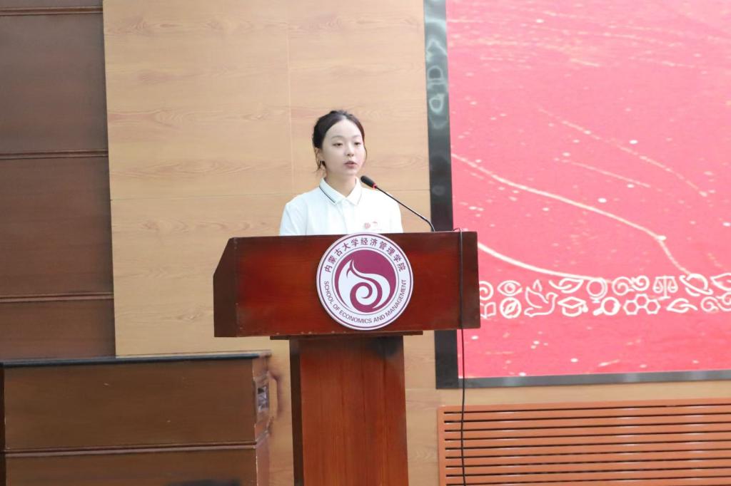 2023级工商管理专业硕士研究生思桐代表在校生发言,她勉励同学们在学术道路上应始终保持敬畏之心,不惧失败、独立思考、勇于创新,不断拓展视野;在品德方面,要恪守诚信、尊重差异、担当责任,做有温度、有立场的时代青年;要主动将个人理想融入民族复兴伟业,以历史主动精神回应时代召唤,脚踏实地、追求卓越,努力成长为可堪大用、能担重任的栋梁之才。
