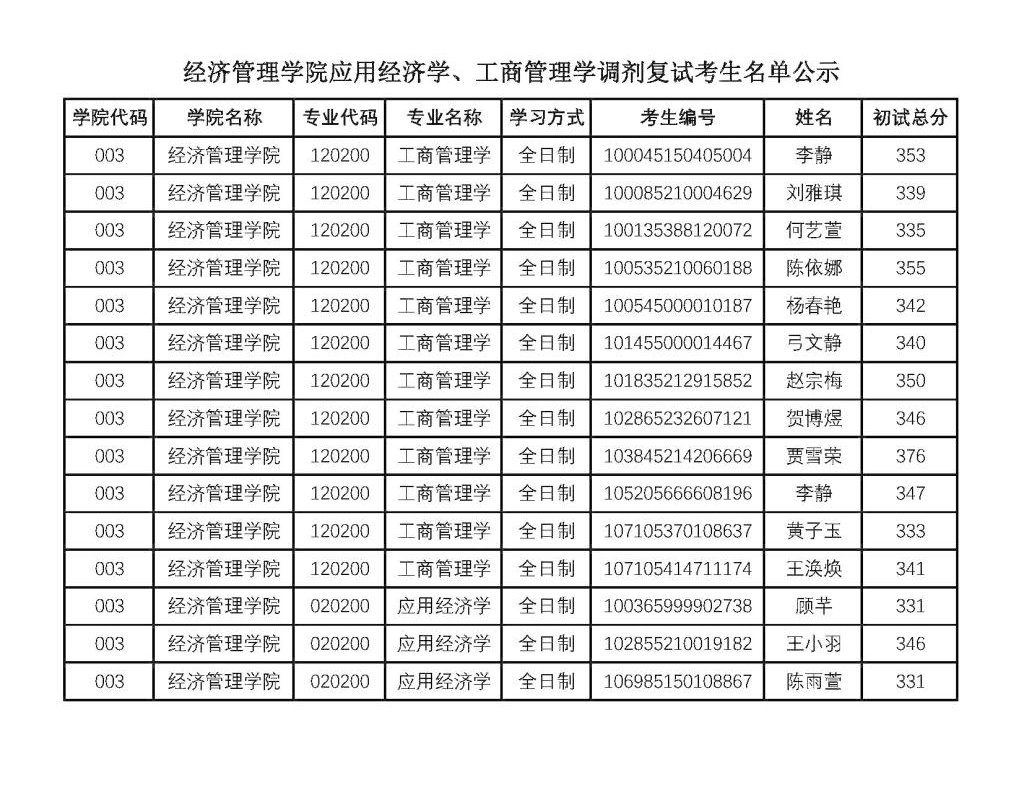 PA集团官网应用经济学、工商管理学调剂复试考生名单公示