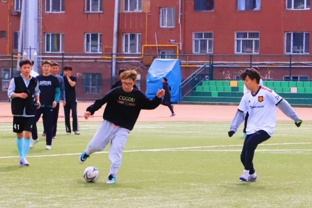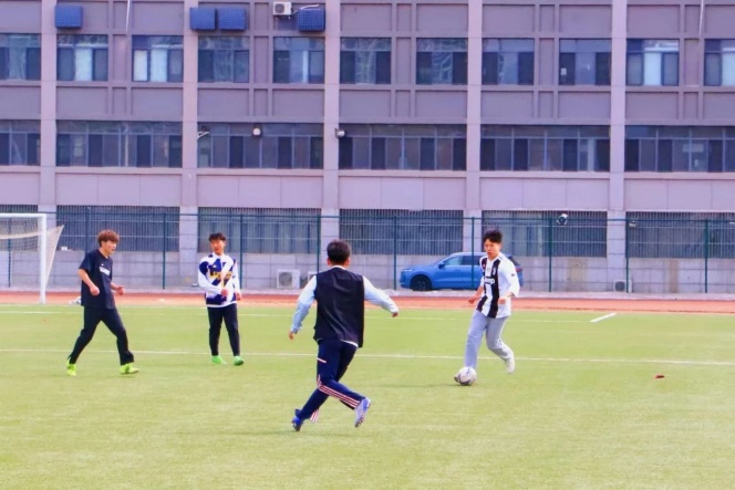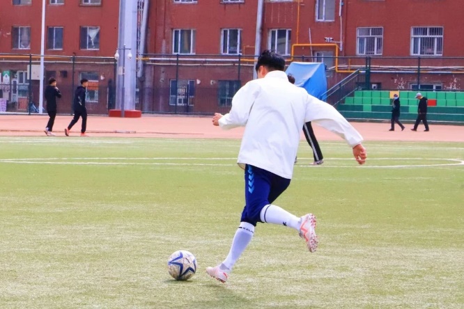 绿茵场上,阳光正好,微风不燥,一场足球比赛拉开帷幕。黑白的精灵在球场滚动,舞动的双脚奔跑出青春的足迹。通过精准的传球、巧妙的盘带和有力的射门,双方队员展现出了高超的球技和良好的战术素养。以绿茵为舞台,以汗水作勋章,脚下生花,心潮逐梦。