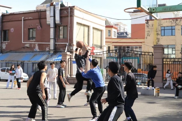 聚力同行,迎“篮”挑战。篮球场上,少年们娴熟运球、精准投射。运球过人妙传,脚步迅速身轻如燕;投篮罚球三分,百步穿杨防守稳健。汗水不断落下,脚步声还未停止,篮球场上的每一次拼搏,都镌刻着少年们的青春热血。