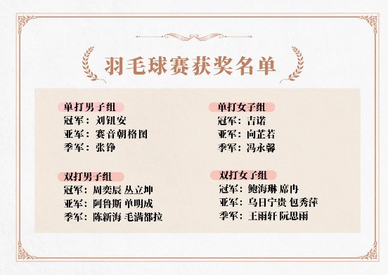 蓄势待发,尽显英姿飒爽风范;挥拍方寸,彰显蓬勃昂扬之姿。经过激烈的角逐,最终,比赛结果如下: