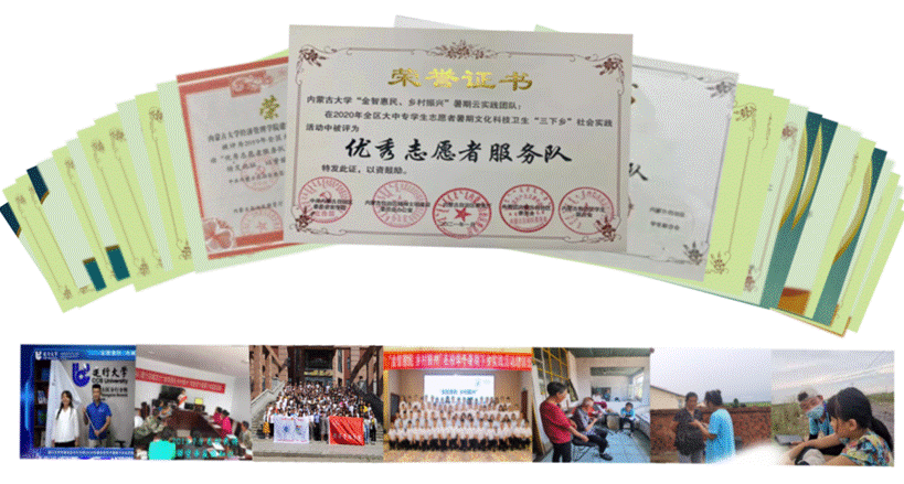 依托中国时间利用调查与研究中心,建成国内唯一的中国家庭时间利用调查研究平台,加入中国高校数据联盟;先后与中国建设银行内蒙古分行、西南财经大学中国家庭金融调查中心合作开展“金智惠民 乡村振兴”“中国家庭金融调查”等暑期“三下乡”社会实践品牌活动,连续多年在“金智惠民 乡村振兴”、“中国金融-中国时间利用国情观察”等调查活动中被内蒙古党委宣传部、教育厅等5部门联合授予“优秀志愿者服务队”荣誉称号。参与实践调查的员工达1200人次,实现本科生全覆盖。“金智惠民 乡村振兴”老员工社会实践育人项目获批2023年度内蒙古自治区高校思想政治工作精品项目。