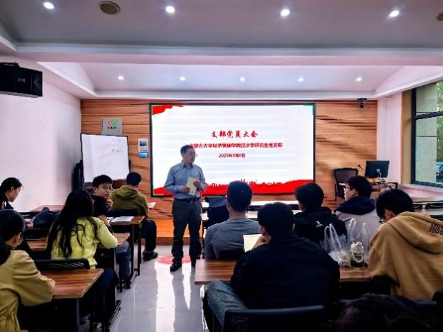为推进深入贯彻中央八项规定精神学习教育,进一步加强党的作风建设,2025年5月6日PA集团官网经济学研究生党支部在知行楼(经管楼)108教室,开展了支部书记讲作风党课活动。
