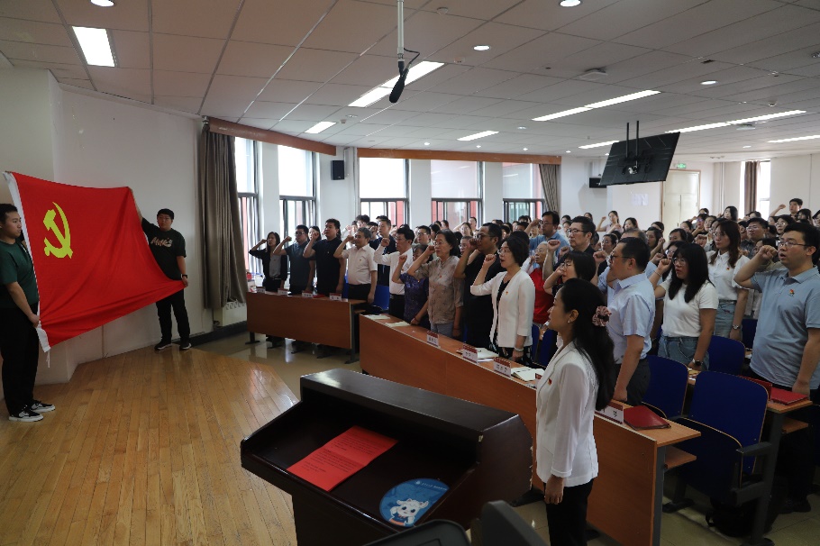王学成、罗冉作为新发展党员代表发言,表达了时刻牢记入党誓词,永葆政治本色,积极践行全心全意为人民服务的宗旨,为强国建设、民族复兴贡献青春力量的决心。