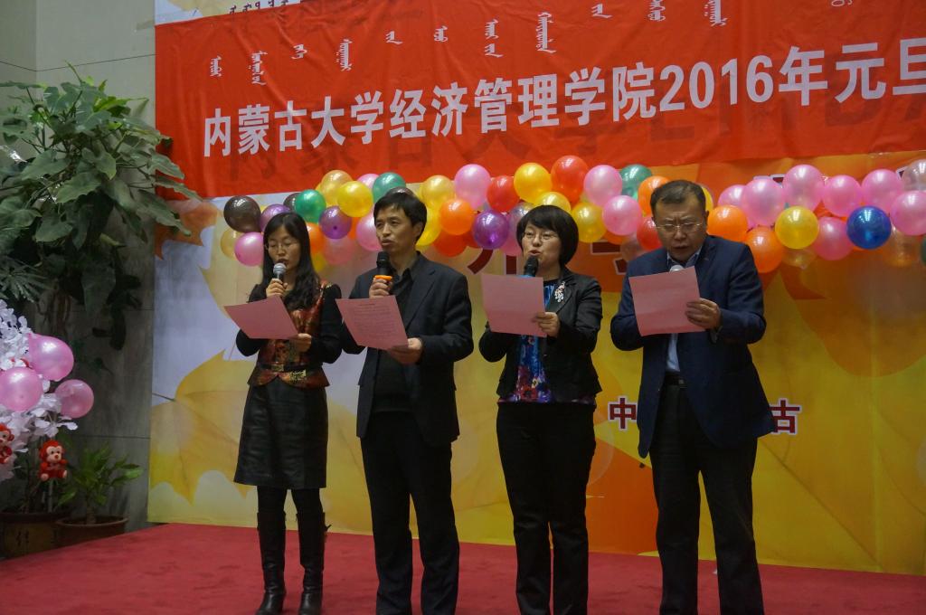 羊随新风辞旧岁,猴节正气报新春。2015年12月31日下午5点,pa集团官方网站2016年元旦联欢暨慰问活动于经管楼共享大厅拉开帷幕。公司领导、离退休教师以及全体在职教职工一起喜迎新年。公司党总支书记张士伟以及副经理(主持工作)杜凤莲教授致新年贺词。