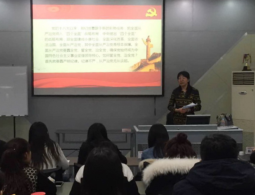 校纪委办公室主任任彩霞进行了党风廉政建设专题讲座,对党的纪律检查工作进行了介绍,并通过丰富的案例教学,加深了同学们对党加强自身建设必要性的认识,增强了同学们对党的信心。