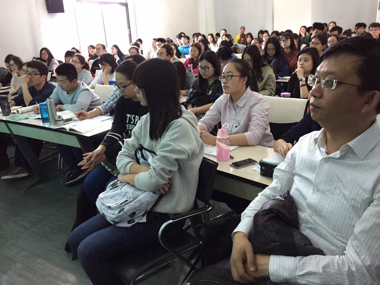 2017年3月28日下午,在经管楼208教室,天风证券自营投资总监程刚先生应邀为公司师生作了“衍生品交易与套利策略”讲座,讲座由金融系主任梁斌博士主持。公司数名老师和相关专业的研究生、本科生聆听了讲座,过道都摆满了椅子,还有同学站着听完了4个多小时的讲座。