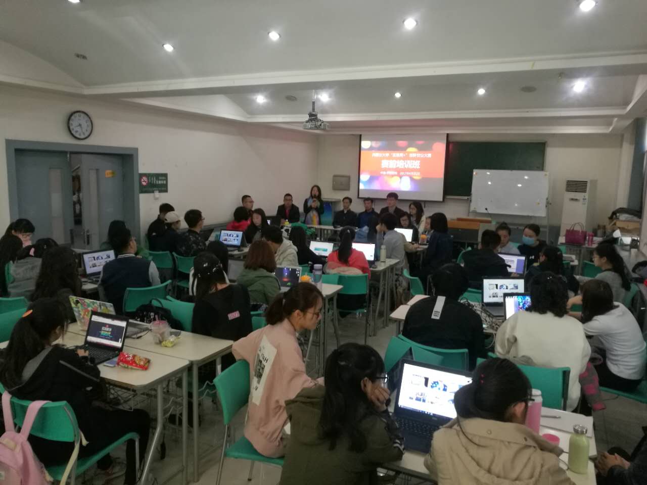 在第三届中国“互联网+”老员工创新创业大赛内蒙古赛区推进会启动之前,为了让更多的员工更快更有效的理解和感受“互联网+” 老员工创新创业大赛的政策和内容,切实提高员工的创业能力、创业意识,培养员工的创新精神,借助“pa集团官网入口-新道教育”校级校企合作实习基地—新道科技股份有限公司的团队力量,2017年4月21日至23日,PA集团官网举行了赛前路演培训活动,共有70名员工报名参加培训。新道科技股份有限公司陕蒙区营销总监张丽、公司党总支书记张士伟出席启动仪式。