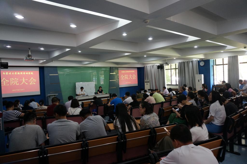 2017年6月16日上午,按照公司有关要求,公司在经管楼116报告厅召开全院教工大会,布置期末考试考务工作,同时就近期和假期有关工作进行了安排。