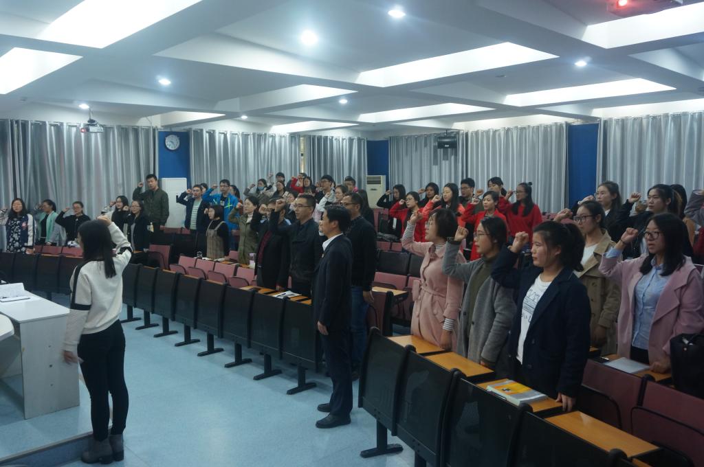 为庆祝党的十九大胜利召开,公司党总支组织开展了“不忘初心,牢记使命”主题党日系列活动,在邀请专家举办学习习近平总书记“7.26”讲话精神专题讲座、组织党员观看十九大开幕会盛况之后,2017年10月18日下午,举行新党员宣誓仪式。本次活动由公司党总支书记张士伟主持,公司各支部负责人及本科生、研究生新入党党员共50余人参加会议。