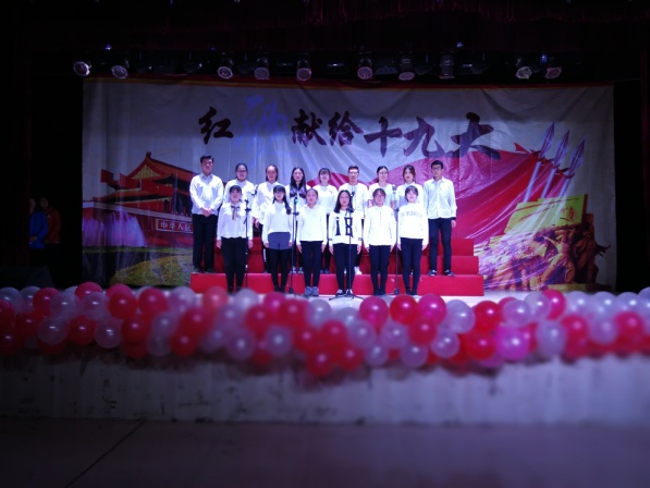 为了深入学习和贯彻党的十九大精神,弘扬爱国主义精神,2017年12月5日,公司于东区活动中心成功举办了以“红歌献给十九大”为主题的2017级新生小合唱比赛。此次活动邀请的评委有,校团委组织宣传部副部长陈芳芳,知名音乐人闫飞,内蒙古艺术公司老师赵万梅,公司老师黄小葵、王乾宇、闫东祺、阿如拉,还有公司牧歌合唱团的同学:阿茹汗、苏日古嘎、包智敏。公司党总支书记张士伟出席并致辞。