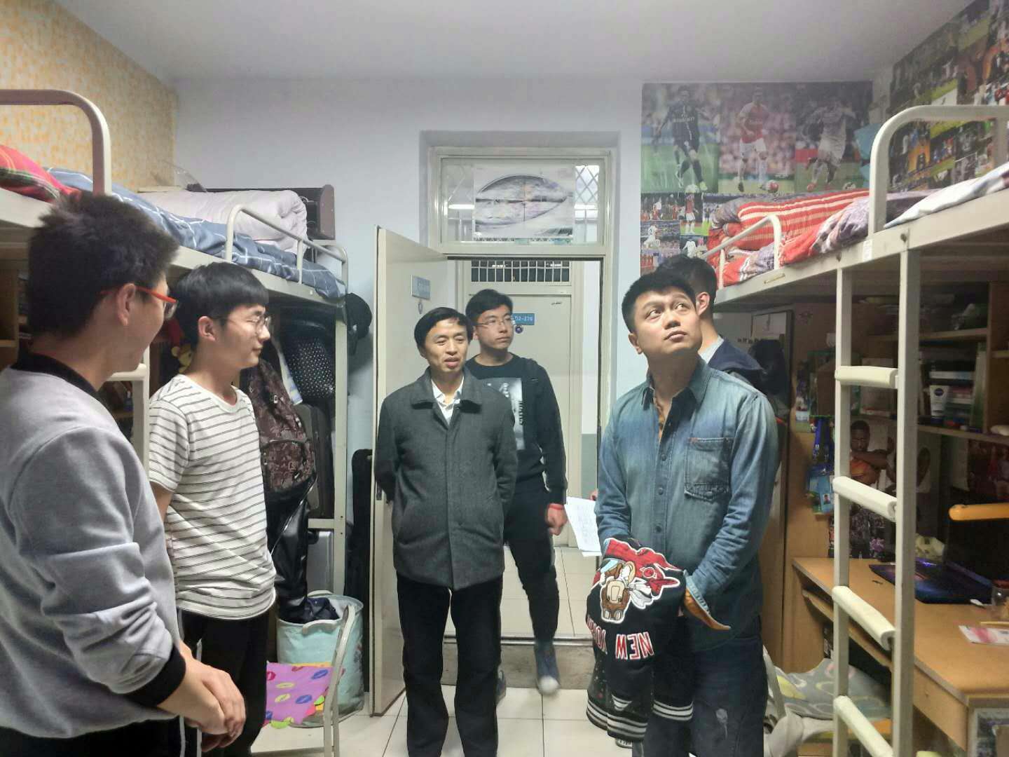 3月13日晚7点,公司党总支书记张士伟、本科生辅导员闫东祺、阿如拉、赵爱萍、其萌老师对公司员工宿舍进行了慰问和检查。