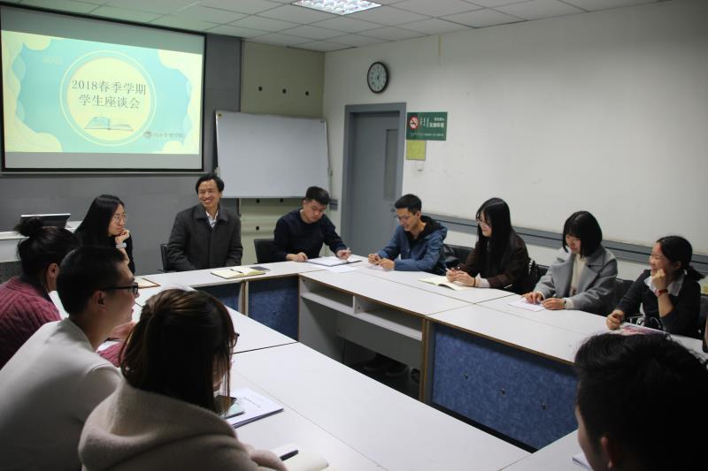各位同学纷纷发言,让座谈会的气氛特别的融洽,随着发言的不断深入,老师们对与第二课堂活动的设置,学分转换,考研以及社会实习实践信息的获取等问题一一进行了解答。同学们在对考研自习室不足、图书馆借书数量少等问题上提出了意见。