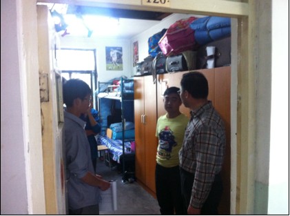 ,公司党总支书记苏振荣带领团总支和员工会利用两天时间分别对公司本校区和东校区宿舍进行突击检查。在此次检查中大部分宿舍遵守宿舍安全卫生条例,但也有个别男生宿舍仍存在不叠被子、床上用品卫生极差、物品摆放杂乱、网线和插座安全隐患情况,苏书记对这些宿舍同学进行了提醒和教育。