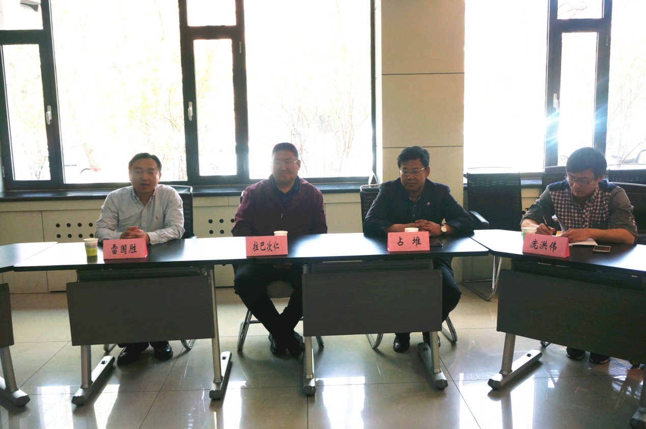 2018年4月19日上午,西藏大学经济与管理公司党委书记、副经理拉巴次仁、副经理占堆、副经理雷国胜、教务科科长庞洪伟一行四人来公司访问,交流团队建设经验。