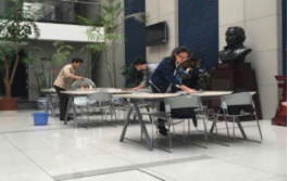 2018年5月5日上午,两个培训班的学员分组在经管楼楼内进行了一次大扫除劳动,每一位参与的学员都很认真地完成了自己的劳动任务。劳动结束后,分成两组分别在经管楼207、307教室观看电影《红海行动》和《厉害了,我的国》,接受爱国主义教育。