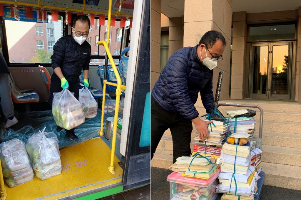 从鄂尔多斯带队返校后,侯建昀又投身校内的抗疫大军,服从公司安排,加入北校区疫情防控专班,负责专项工作。同时,他还积极参与为东院员工送餐、公司物资、学习用书的搬运工作。