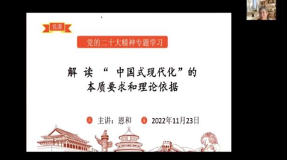 公司青年教师王乾宇以《不断推进马克思主义中国化时代化——学习党的二十大精神》为题,生动形象地带领学员们深入学习了马克思主义中国化时代化历程。