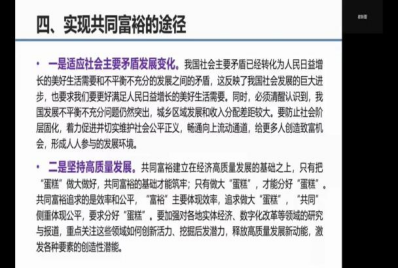 教工第一党支部书记崔新蕾以《共同富裕的特征与路径》为题,以共同富裕的发展历程为切入点,强调要正确认识和把握共同富裕的内涵和路径。