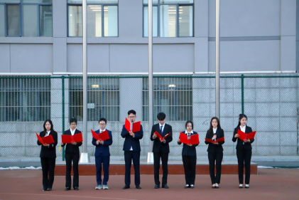 升旗仪式完毕后,公司员工代表吕萌、王泽旭、凌同伟、王柏荀、席冉、张东冉、梁雁南、王峥8位同学带来了国旗下的朗诵《丹心从来系家国》。“让爱国主义旗帜高高飘扬,焕发新的时代光芒!”战鼓声声催奋进,旌旗猎猎踏征程,时代前进的号角已然吹响,热爱祖国的光辉已洒在奋斗的道路上,我们要从典籍与仁人志士的故事中涵养爱国情,于心底厚植家国情。