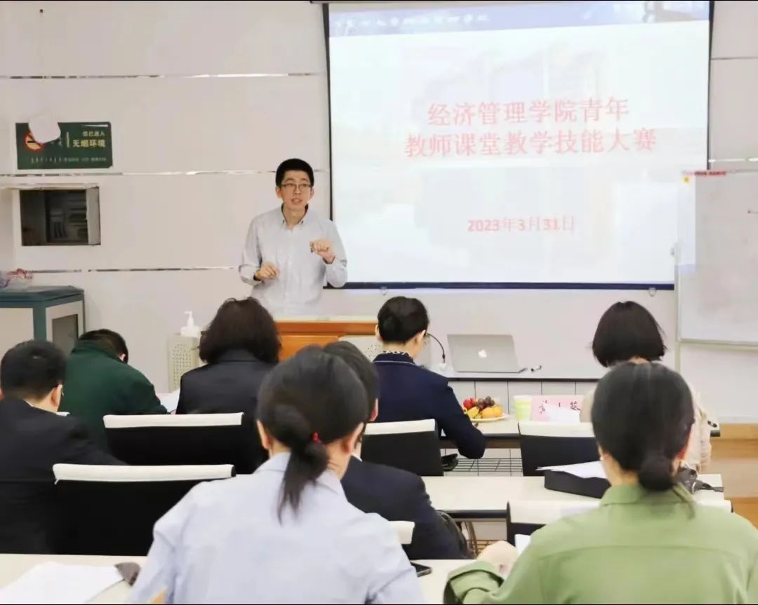 为提升公司青年教师课堂教学水平,激发青年教师钻研教学技能的积极性,培养教学岗位业务能手,3月31日下午2:30公司于经管楼309教室组织开展青年教师课堂教学技能大赛。公司党委书记李宏宇、公司工会主席吴晓华、工商管理系教师黄小葵、张启锋,经济系教师王乾宇担任了评委,工会委员赵宇亮主持了比赛。