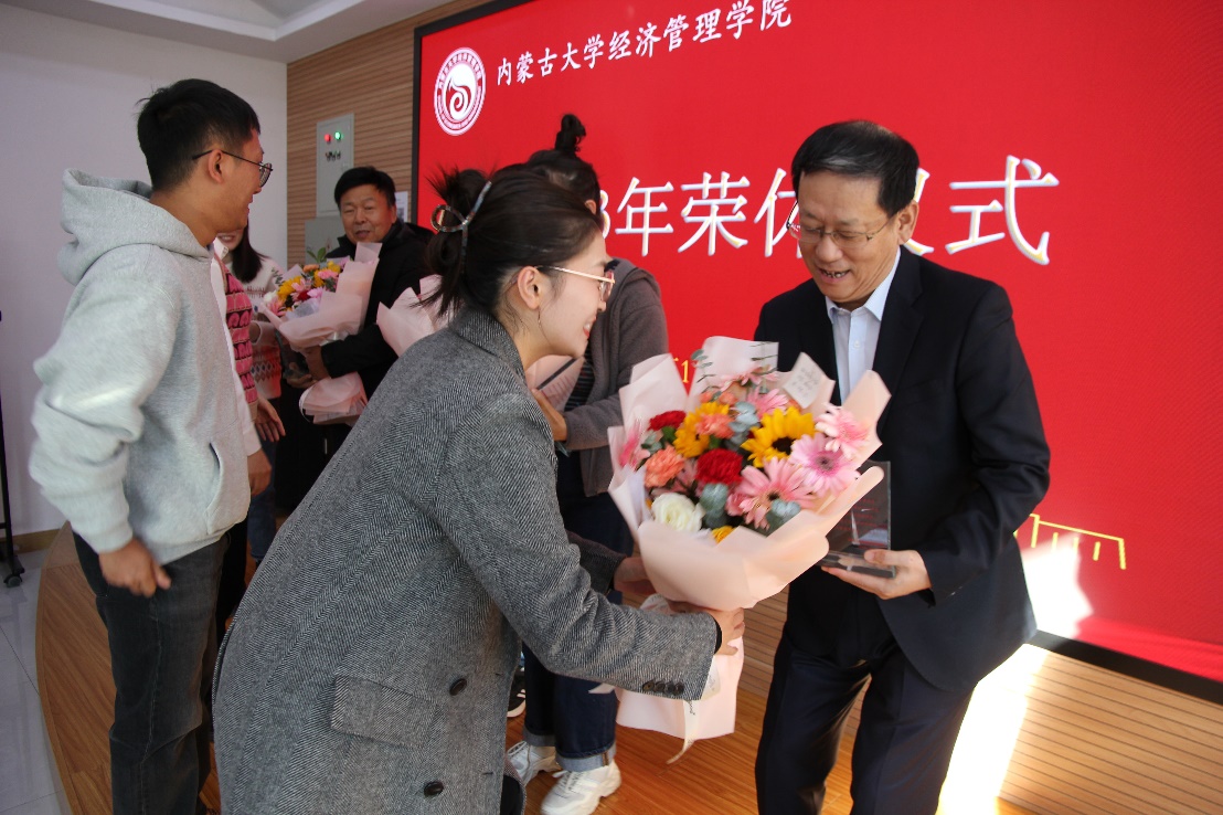 在一片热烈的掌声中,公司党委书记李宏宇向各位荣休教师颁发荣休纪念牌,年轻教师代表也为各位荣休教师代表敬献美丽的鲜花。