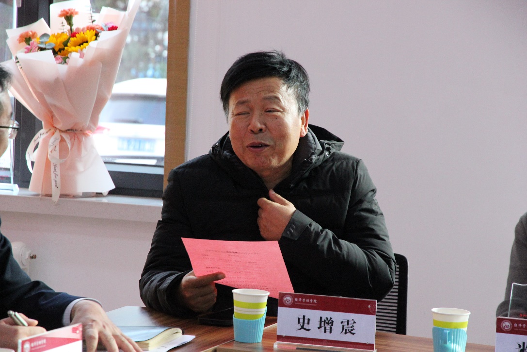 大会第四项是教师代表发言。崔新蕾、李宜洺、周莹三位系主任以及来自四个系的教师代表杨理、张启锋、秦虎、王瑾、刘斯琴老师分别发表感言。老师们一起细数了与退休教师的难忘过往,回忆了退休教师在三尺讲台的飒爽英姿,回味着退休教师的谆谆教诲。老师们倡议,所有在岗老师要以退休教师们为榜样,传承历史的接力棒,沿着他们开拓的道路,奋勇前进。