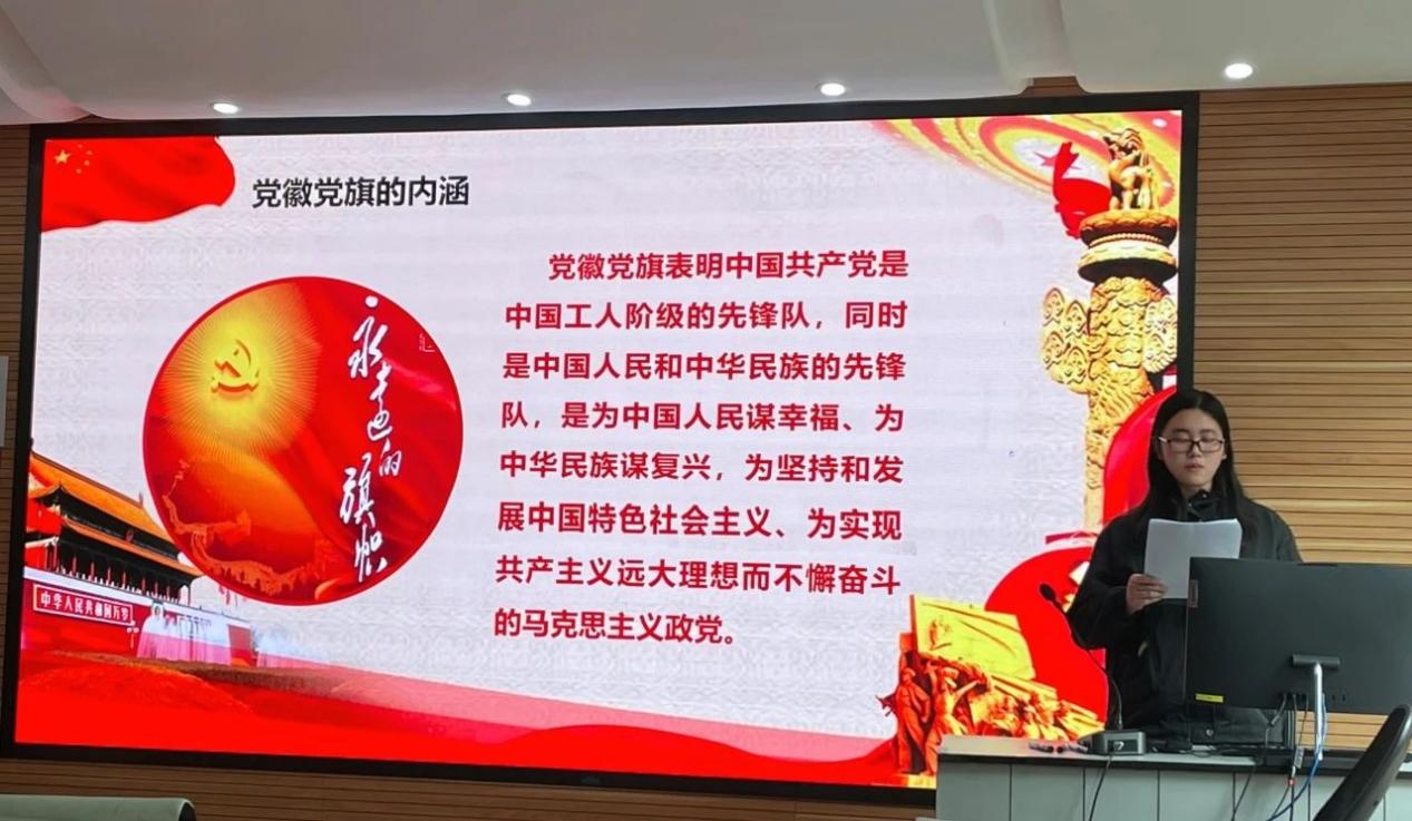 本次集中学习由支部宣传委员蔺嘉林同志主持,预备党员石佳琦同志领学,围绕《中国共产党党徽党旗条例》的主要内容展开。