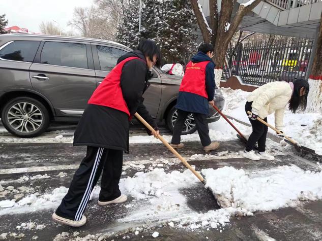 活动过程中,志愿者们不惧雪虐风饕,有序分工,默契配合。除雪工具与地面的摩擦撞击声不绝于耳,一个个忙碌的身影是皑皑白雪中最靓丽的风景线。冻雪“坚硬”,但人心更“紧”,志愿者们互相配合,高效地清理着积雪。经过4个小时的接力奋战,志愿者们清扫出了一条条“暖心路”,积雪已基本清理完毕,极大地排除了冰雪天气校园内存在的潜在安全隐患。