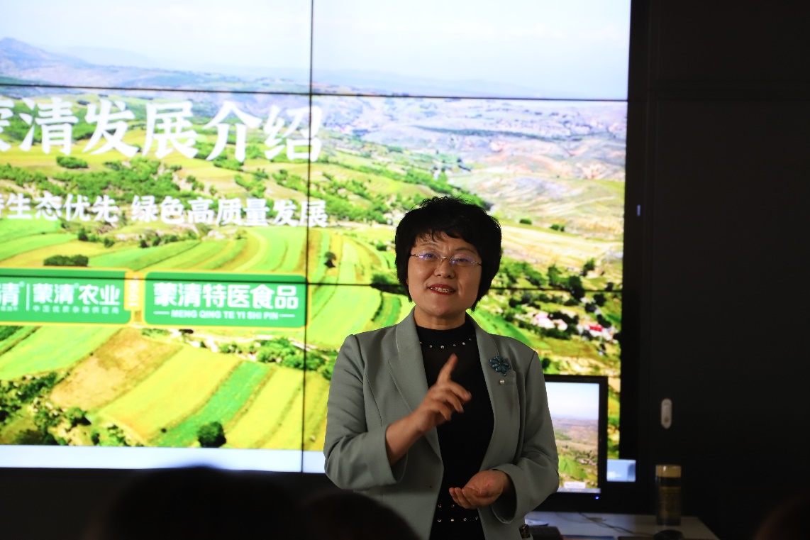在蒙清公司田园客厅,刘董事长为师生讲解了蒙清农业的发展历程、企业愿景和企业文化,并表达出渴望更多“新农人”投身农业事业的企业情怀。