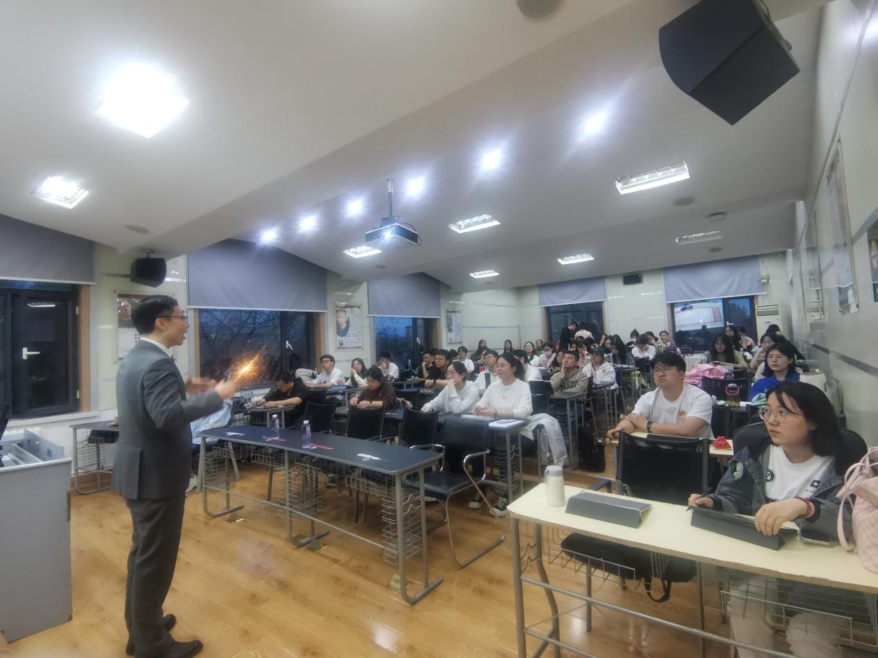 2024年4月19日19:00,PA集团官网联合国融证券投资者教育基地,在赛罕校区知行楼(经管楼)409教室,开展了“经途引航”证券行业就业指导讲座。本次讲座活动由金融学系系主任周莹老师主持,国融证券内蒙古分公司人力资源部培训负责人王知白主讲,公司本硕员工近60人参加了此次讲座。