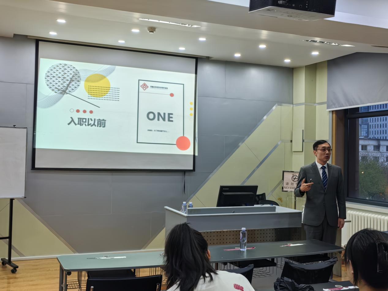 主讲人王知白首先对金融市场和证券行业从业情况进行了介绍,重点讲解了证券行业前台、中台、后台的组织架构以及员工在行业内的晋升通道。他提醒员工在参加招聘面试前要对公司和职位进行充分探索,提高面试成功率。王知白还就目前证券行业校园招聘情况进行了分析,强调了实习实践经历对求职面试的重要性。最后,王知白针对如何适应职场生活进而在职场中快速成长给出了指导性建议,鼓励员工们要注重发展沟通能力、学习能力和协作能力,为今后职业发展做好准备。