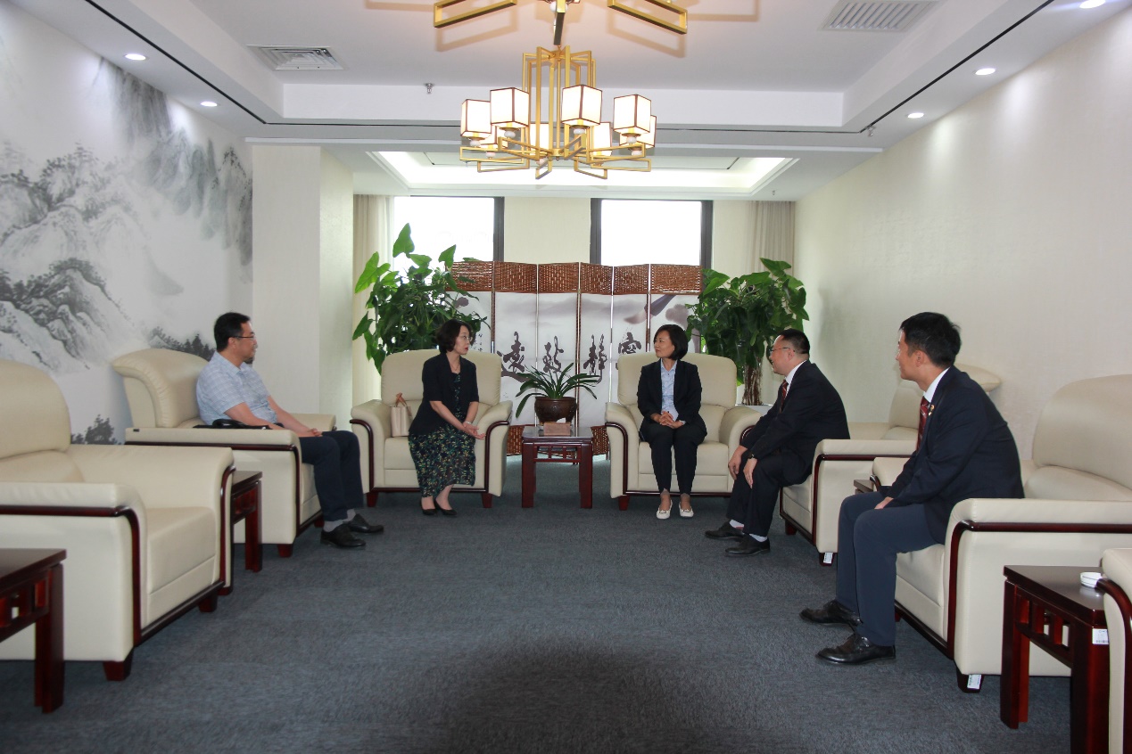 院企双方领导在新华保险内蒙古分公司接待室进行洽谈、交谈。
