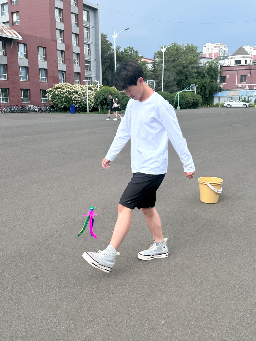 毽子似彩蝶翩翩,于空中舞动轻盈身姿。同学们身姿矫健,抬脚踢毽,活力四溢。毽子在空中上下翻飞,每一次的准确踢中,都是参与者对时机和技巧的完美把握;每一次的兴奋欢呼,都是大家对这次活动的深深热爱。毽子起落间,传递着欢乐与朝气。