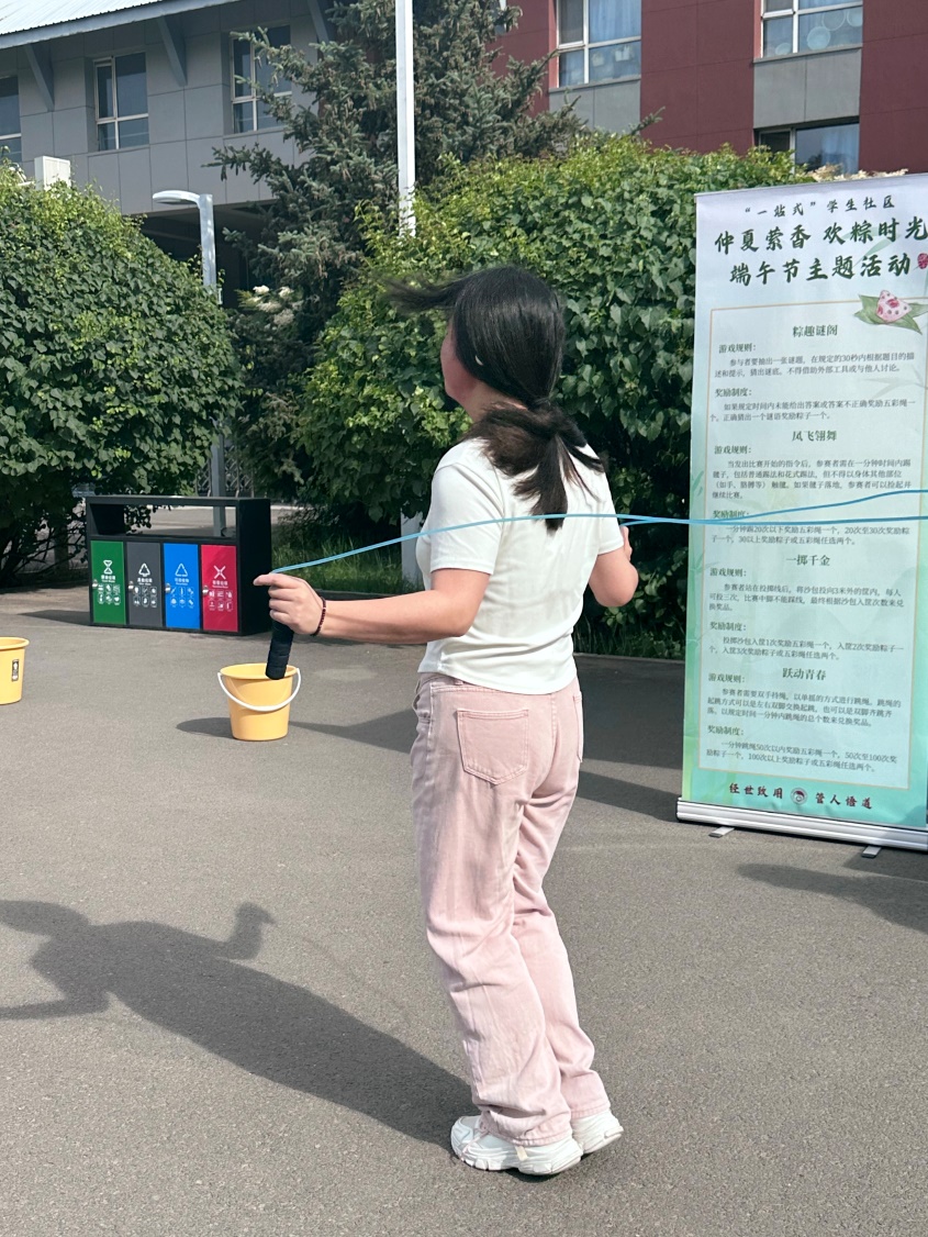 同学们的身姿恰似菖蒲挺秀,如艾草昂扬,在跳跃中挥洒着青春的朝气蓬勃。赛场上气氛热烈至极,每一次的跳跃都充满激情,赛场外的喝彩声络绎不绝,每一次呐喊都充满力量。端午的清风与跳绳的飞舞相映成趣,节日的氛围和运动的激情完美结合。