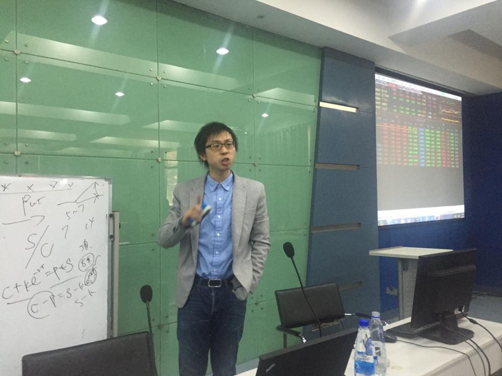 本次讲座由上交所余力主讲,余力老师毕业于复旦大学和苏黎世理工大学,曾在瑞士银行等多家金融机构实习和就职,现在就职于上交所衍生品业务部。在讲座中,余力老师详细介绍了境外、国内期权市场发展概况,上交所股票期权交易规则以及期权交易,期权基础知识、定价、希腊字母风险、波动率、上交所期权交易制度设计安排、期权市场操作实务,让同学们真实感受期权市场规律,运用期权交易策略,了解期权交易风险,掌握期权知识、定价及其应用。在互动环节,大家踊跃提问,余力耐心解答了现场同学提出的关于资本市场和期权模拟交易的相关问题。