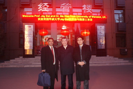 郭晓川经理与Jay Bal教授和马骁博士在经管楼前合影