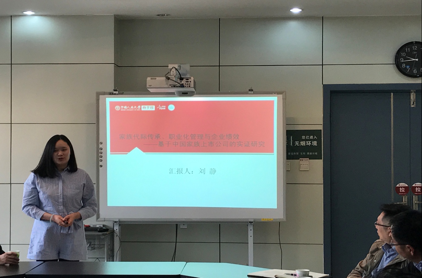 刘静博士在会上作了题为“家族代际传承、职业化管理与企业绩效——基于中国家族上市公司的实证研究”的报告。报告主要关注家族管理和职业化经营对家族企业绩效、战略选择的影响,以及家族控制下,导致创始人CEO和继任家族CEO代际绩效差异等问题的研究。她认为,相对于非家族CEO,家族CEO经营管理下的家族企业绩效更优;多元化战略对CEO类型和家族企业绩效的影响关系发挥中介作用;国际化战略对CEO类型和家族企业绩效的影响关系发挥中介作用;与创始人CEO相比,继任家族CEO经营管理下的家族企业更注重对家族控制的强化,从而对企业绩效有着消极影响。