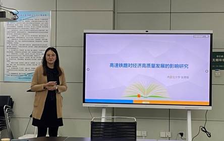 2021年10月21日下午,公司举办第一百二十八期“内大经管知行讲坛”,公司经济学系张雪薇博士作了题为“高速铁路对经济高质量发展的影响研究”的学术报告,会议由经济学系系主任崔新蕾副教授主持,公司相关专业的老师、员工参加了会议。