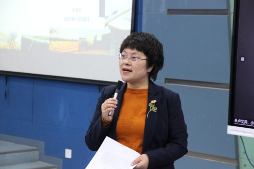 杜凤莲经理代表公司致辞,她表示,感谢卢文兵先生在百忙之中为同学们进行专题讲座,介绍了卢文兵先生的个人简介、工作经历及取得的成就。