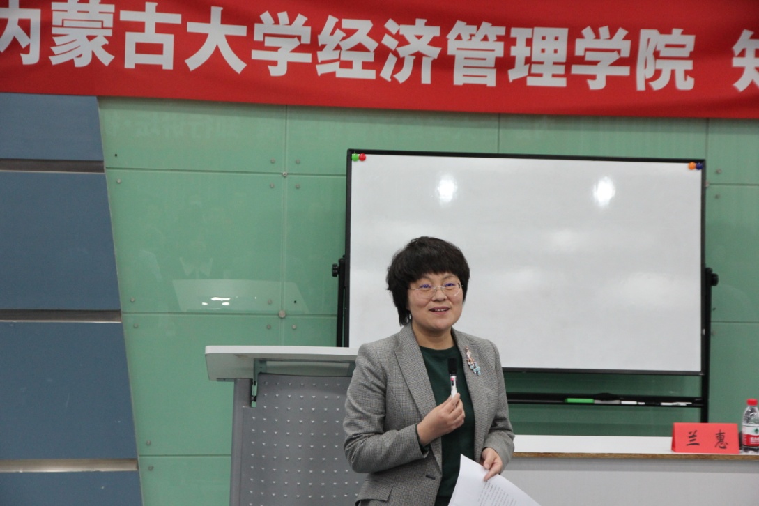 杜凤莲经理代表公司致辞,她表示,感谢兰惠先生在百忙之中为经管院师生进行专题讲座,介绍了兰惠先生的个人简介、工作经历及取得的成就。